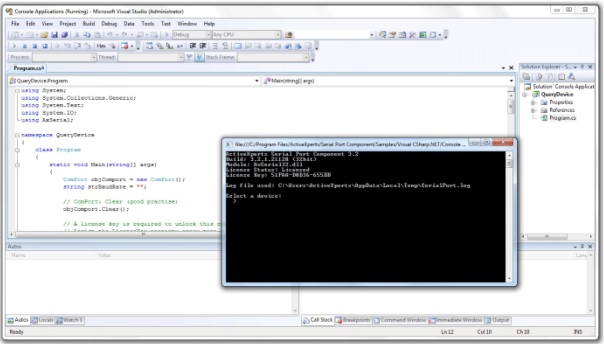 ActiveXperts Serial Port Component features the following: Direct COM ports supported (e.g.: 'COM2'); Windows Telephony Devices supported (e.g.: 'Standard 9600 bps Modem'); Support for RS-232, RS422 and RS485; Up to 256 ports opened simultaneously; Thread-safe to allow the component in multi-threading environments (samples included); Support for Hayes compatible modems, connected via a serial port, USB or Bluetooth; Support for Virtual COM ports (i.e. COM ports redirected through the network); Hardware flow control (RTS/CTS, DTR/DSR); Software flow control (XON/XOFF); Support for any baudrate, parity, stopbits; Full buffered data transfer; Text and Binary data transfer; Advanced logging.