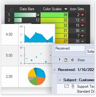 Various cell types: text, numeric, combo box, date/time, color picker, check box and others