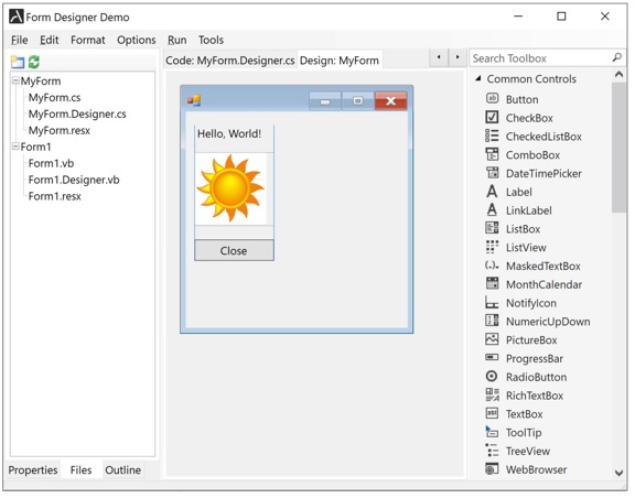 With AlterNET Studio, users of your applications can write scripts in C#, Visual Basic, TypeScript, JavaScript, Python, and IronPython programming languages, extending your application with custom functionality. Moreover, they can run and debug these scripts with a fully-featured debugging engine and design visual user interfaces with a graphic Form Designer.